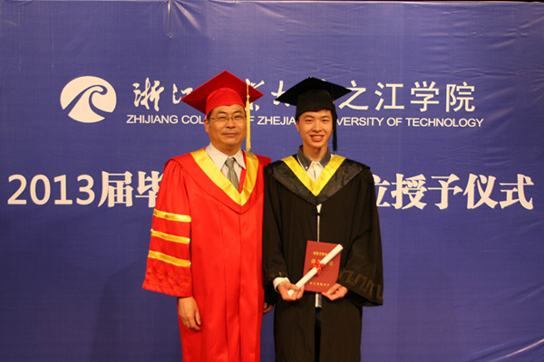 在随后举行的2013届毕业生学士学位授予仪式上,计建炳为获得学士学位的毕业生们颁发学位证书、行“正冠拨穗”礼。