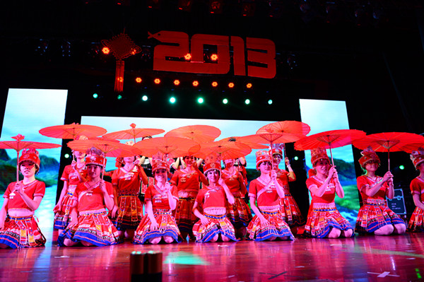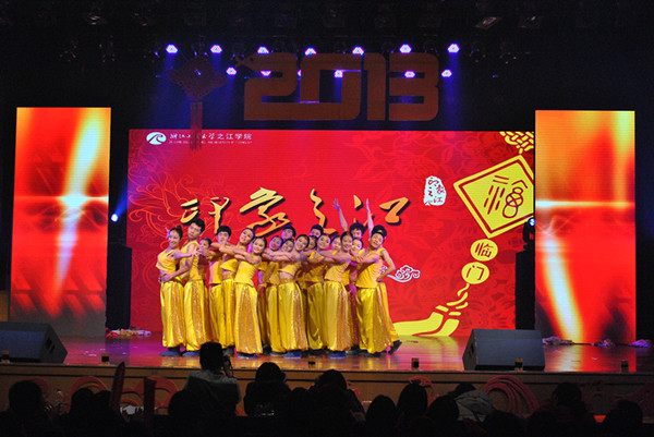 晚会以之江民乐团的《金蛇狂舞》开场,分三个篇章:“先锋闪耀”篇章,歌曲《欢乐中国年》、朗诵《高歌十八大,放歌新未来》、之江舞蹈团的《山乡春来早》、之江合唱团的《我的祖国》、《青春舞曲》等节目表达了全院师生对党和祖国的美好祝福;“锦绣丰年”篇章,舞蹈《红红的日子》和《舞动之江》、独唱《五福临门》、非洲鼓《Fang ga》、走秀《瑞福迎春》等节目展示了学院2012年各项工作取得的成绩,尤其是师生联袂演绎的小品《男生寝室》,讲述了学院文明寝室建设过程中发生的点滴趣事,引起全场观众的强烈共鸣;“腾飞之江”篇章,绍兴县选送的《三老太夸柯桥》、舞蹈《Only one》、教师联唱《歌声飘过60年》等节目展现全院师生对之江美好明天的期盼,其中《和谐大家园》节目以舞蹈结合视频展播,展示了专业特色和精品校园文化活动,掀起了整台晚会的高潮。