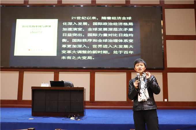 讲座中,陆华从党的十九大报告入手,结合《新时代的中国与世界》和《新时代的中国国防》两书精要,指出当今世界正处于百年未有之大变局中。随后,她介绍了当前国际发展战略形势的基本特征,列举了国家间战略竞争呈上升趋势、军事安全问题突出、非传统安全威胁持续蔓延等特点,阐述了我国周边安全面临的主要威胁和挑战。她指出中国正处于重要战略机遇期,即使面对复杂的国际局势,中国将以谋大势、讲战略、重运筹的外交思维,奉行防御性的国防政策和强有力的国防保障来深化我国的国家安全战略。讲座最后,她鼓励青年大学生努力学好科学文化知识,树立爱国情怀,增强国防意识,使中国在风云突变的国际局势中立于不败之地,实现中华民族的伟大复兴。