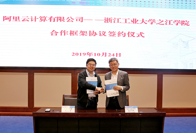 10月24日上午,第二届中国(绍兴)工业互联网创新发展论坛在绍兴举行,绍兴市市长盛阅春出席大会并致辞。论坛上举行了绍兴市人民政府、浙江工业大学和阿里云计算有限公司共建绍兴工业互联网学院(绍兴工业互联网研究院)签约仪式。浙江工业大学副校长虞晓芬、绍兴市政府副秘书长何建、阿里集团副总裁库伟代表三方签署合作协议。论坛结束后学院院长李澎林与库伟代表双方在之江学院签订战略合作协议。