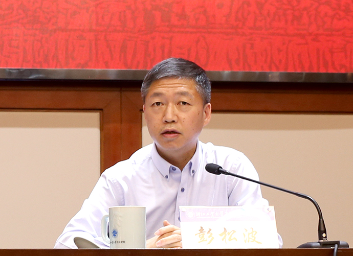 彭松波在讲话中对做好本次干部换届聘任等相关工作强调了四个方面的意见:一是要统一思想,凝聚共识,高度认识做好换届工作的重要意义。做好干部换届工作是全面深化学院治理体系改革的重要部署,也是完成学院发展目标的战略要求,更是加强干部队伍建设的内在需求。二是要坚持党管干部,深化改革,切实提高选拔任用干部的科学化水平。学院党委将坚持党管干部原则和正确的选人用人导向,依据“德才兼备、以德为先”“注重实绩、群众公认”“民主公开、竞争择优”“民主集中、依法办事”的原则,把握优化干部结构功能,努力建设一支忠诚干净担当、高素质专业化的中层干部队伍。三是要保持本色,顾全大局,确保换届期间各项工作的正常运转。对整个换届工作而言,要注重四个“要”:首先要积极参与,合理定位。教职工要当好主人翁,实事求是、客观公正地评价干部,协助学院选好配强中层干部队伍。其次要讲政治,坚决服从组织安排。讲政治、守纪律、懂规矩,正确对待岗位调整,持平常心、做本分事,积极对待工作。再次要顾大局,正确对待“进退留转”。最后要强能力,切实牢记责任担当。全面提高领导能力和管理水平,强化政治担当、改革担当和行动担当,在行动上见落实,在落实上见成效。四是要加强领导,严肃纪律,确保换届聘任工作在风清气正的氛围中圆满成功。要弘扬正气,真正把那些信念坚定、实绩突出、勤政务实、敢于担当、清正廉洁的干部选拔出来。要严守纪律,坚决整治和杜绝干部选拔任用中的不正之风,用铁的纪律保证换届工作顺利进行。还要始终履行好本职工作,本学期结束前所有岗位实行新老干部同责,退任干部要时刻牢记自己党员身份,支持帮助原岗位新任干部,所有岗位实行新老干部同责,确保本单位各项工作的正常运行、衔接有序。