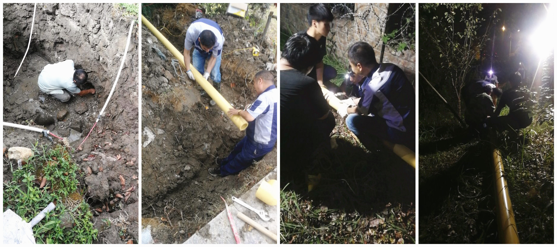 图:水电修建部维修工对管道进行紧急维修