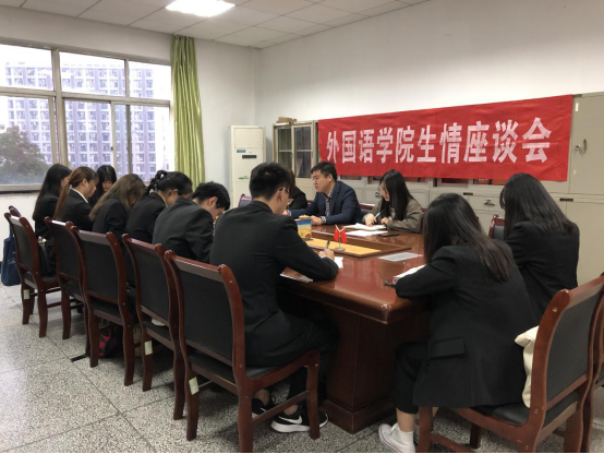 近日,外国语学院召开新学期团学工作座谈会,这也是第六十七次“外语生情”座谈会,学院党总支书记、团委书记、新生辅导员、学生会及社团主要成员10余人参加会议。