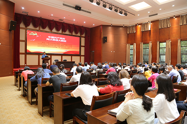 陈伦华作了题为《中国共产党的两次思想大解放》的专题报告,他围绕延安整风、邓小平南方谈话两次历史事件,详细讲述了中国共产党建党以来的两次思想大解放。他指出,延安整风运动确立了毛泽东思想的指导地位和毛泽东在党中的领袖地位,创造了党的思想建设、组织建设、作风建设的新方法;邓小平南方谈话构建了中国特色社会主义理论体系基本框架,真正找到一条建设中国特色社会主义的道路。两次思想大解放启示我们要坚定马克思主义理论自信,同时要不断推进马克思主义中国化、时代化、大众化;要坚定中华民族文化自信,同时要借鉴和吸收人类文明的优秀成果,推进中国特色社会主义文化的创新发展。