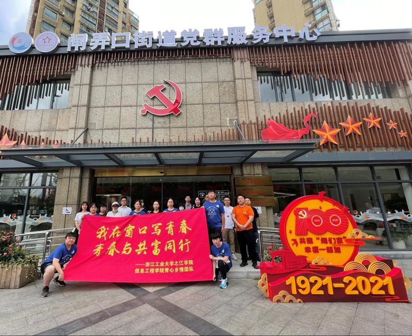 为响应全省大学生共同参与浙江青年携手共同富裕先锋行动,依托“双百双进”大学生暑期社会实践,引领广大青年在行动中不断提高认识、凝聚共识,坚定走共建共治共享的共同富裕之路,7月初,我院信息工程学院暑期社会实践队“青心乡情”团队(下称:“青心乡情”团队)与闸弄口街道团工委联合开展了“我在窗口写青春 青春与共富同行”主题暑期社会实践活动。活动得到了人民日报、杭州日报以及都市日报等各级媒体的广泛关注和报道。