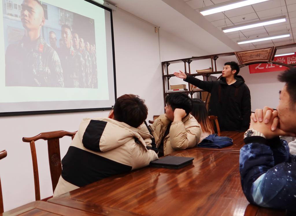 军队是国之长城,关系到民族的生死存亡。“有志青年从军建功,热血男儿矢志报国。”近年来,之江学院积极鼓励引导大学生应征入伍,报效祖国。12月2日晚上,由学院团委、学工部、图书馆主办,图管会承办的“军营生活分享会”在图书馆602室举办,来自不同专业的5名退伍大学生用最真诚的情感,讲述了各自带着亲人的嘱托,离开校园,离开家乡参军入伍,溶进充满青春力量军营的心路历程。