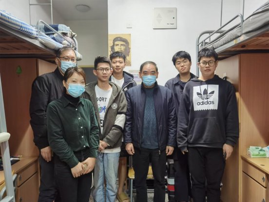 暖心走访、情系学生。近日,学院党委副书记何其洪在建筑学院班子成员和辅导员的陪同下走访了学生寝室,了解同学们的思想、学习、生活动态,并带去了学院的关心与问候。他们认真仔细地查看寝室卫生是否整洁、是否存在安全隐患,并与同学们亲切交谈,希望大家养成良好的生活和学习习惯,营造整洁干净和勤奋向上的寝室环境。何其洪仔细询问同学们的生活状况,叮嘱他们在宿舍内要常通风换气,做好防护工作,积极配合学院的防疫工作,化解紧张情绪,认准权威信息,不信谣、不造谣、不传谣,为疫情防控工作贡献自己的一份力量。