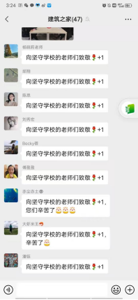 团队“和合”、共聚民心。突如其来的疫情,让所有人猝不及防。越是危难之时,越显责任担当。为保证学院教务教学、学生日常管理工作正常运行,建筑学院班子成员和“两办”全体老师坚守岗位,以校为家,一个都不落下,诠释了"和合型"团队的战斗力。同时留校老师们还通过组织集体校园毅行、打羽毛球、乒乓球等方式健康工作,营造和谐的工作环境和氛围。建筑学院工会主席郁蕾在听闻老师们留守校园后,特地为坚守的老师们送来了暖心蛋糕,带来了慰问与温暖,老师们也纷纷在群里向疫情期间依旧坚守在工作岗位上的老师们点赞致敬。