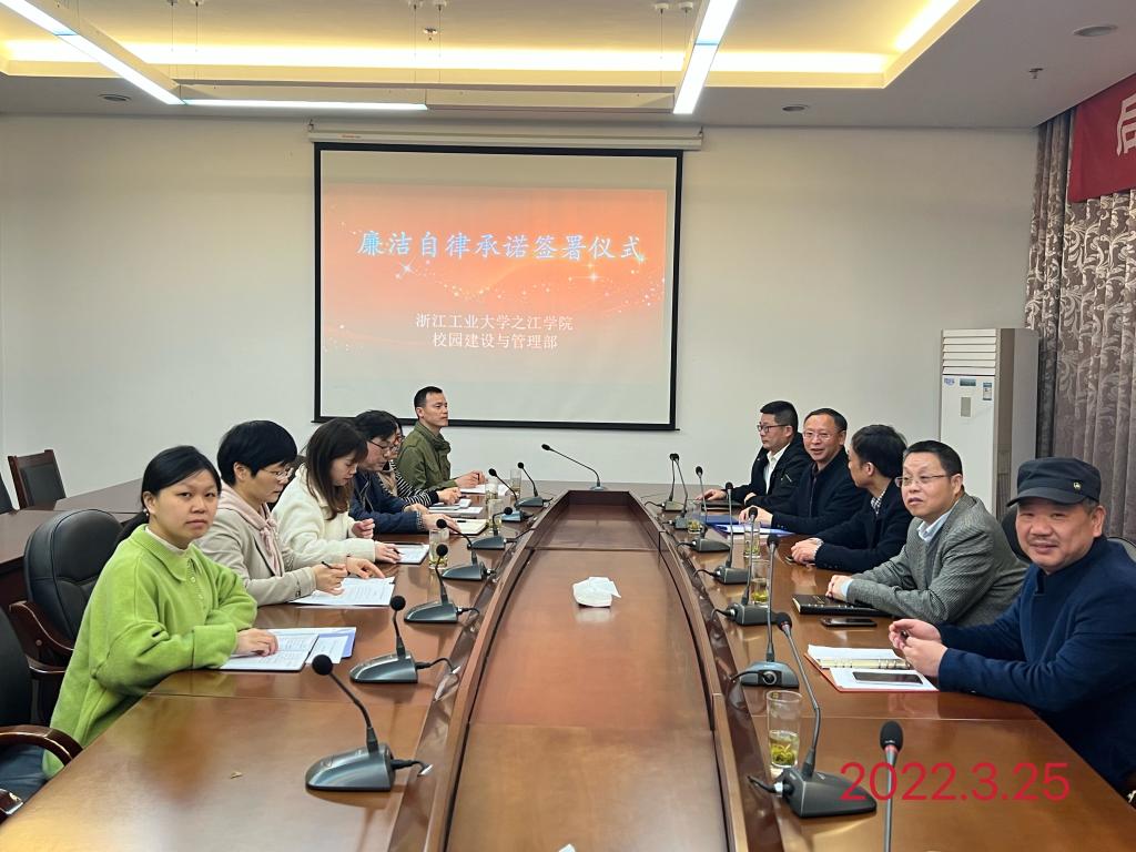 签署仪式上,校园建设与管理部负责人及职工代表分别作了廉洁自律承诺,全体成员签订了《浙江工业大学之江学院校园建设与管理部廉洁自律承诺书》。