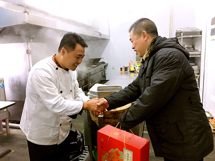 中心主任一行先后走访经营发展部、物业管理部、饮食服务部、水电修建部和医务室等工作现场,与大家亲切交谈,详细询问各部门的工作情况,感谢大家不辞辛苦,不畏严寒,坚守一线,同时叮嘱大家务必提高警惕,把安全放在第一位,确保假期后勤保障服务安全平稳运行。