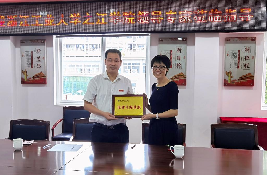 近日,旅游学院党总支负责人一行走访永嘉中学,开展“优质生源基地”签约授牌仪式。永嘉中学校长金玲勇和教务处主任、高三年段长参加仪式。