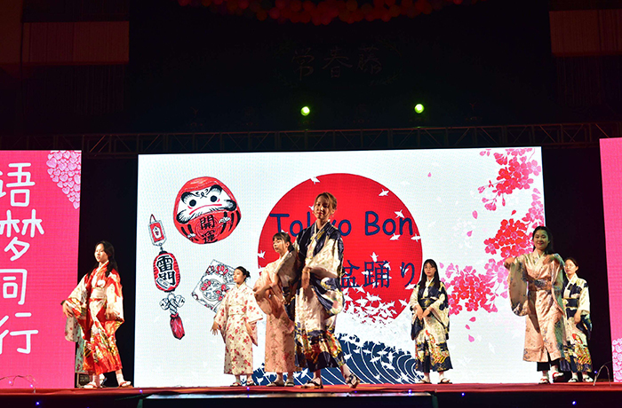 近日,外国语学院“语梦同行”第十六届常春藤文化艺术节闭幕晚会暨毕业生晚会在体育馆举行。外国语学院党政班子,学院教师代表、外教代表、毕业生班主任、辅导员、校友代表、留学生代表及学生共1000余名观众观看了本次晚会。