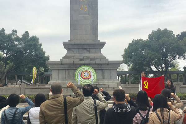 在烈士陵园,同志们学习了“浙东刘胡兰”李敏等革命英雄的事迹,接受了革命传统教育和革命精神洗礼,深切缅怀为抗日战争和解放战争壮烈牺牲的革命烈士。随后,同志们来到纪念碑前,怀着十分崇敬的心情,向革命烈士三鞠躬,并在总支书记的带领下,面向鲜红的党旗,面向人民英雄纪念碑,重温入党誓词,再次向党和人民作出庄严承诺。