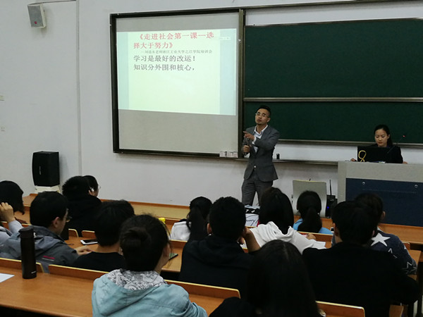 近日,“走进社会第一课——选择大于努力”创业教育讲座在穷理楼1E101举行。讲座由创新创业学院举办。创业家导师、大境界教育(创始人)董事长刘适永应邀作专题演讲。全院师生近200人到场聆听。