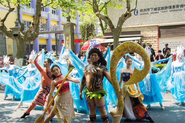 4月29日,杭州中山北路创意街区(凤起路—体育场路),第13届杭州国际动漫节彩车巡游活动精彩上演。围绕“杭州走向世界”这一恢弘主题,此次彩车巡游向五湖四海的友人展示了西子湖畔“动漫之都,美丽之城”的独特魅力。而我院Line Dance•体育舞蹈队的40余名成员凭节目《神笔马良》和《海洋奇缘》出色地完成了该届动漫节的开幕式表演。
