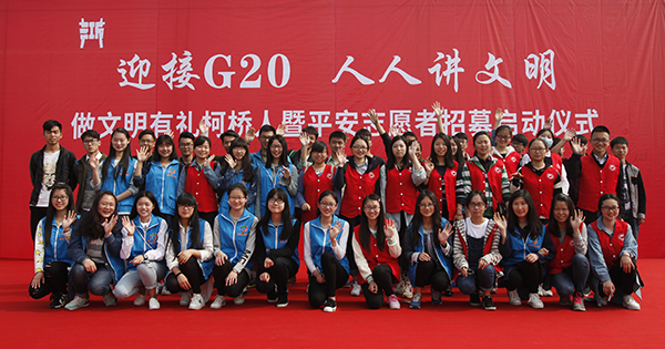 近日,柯桥区“迎接G20、人人讲文明——做文明有礼柯桥人暨平安志愿者招募”启动仪式在明珠文化广场举行,我院50名大学生志愿者参加了活动。