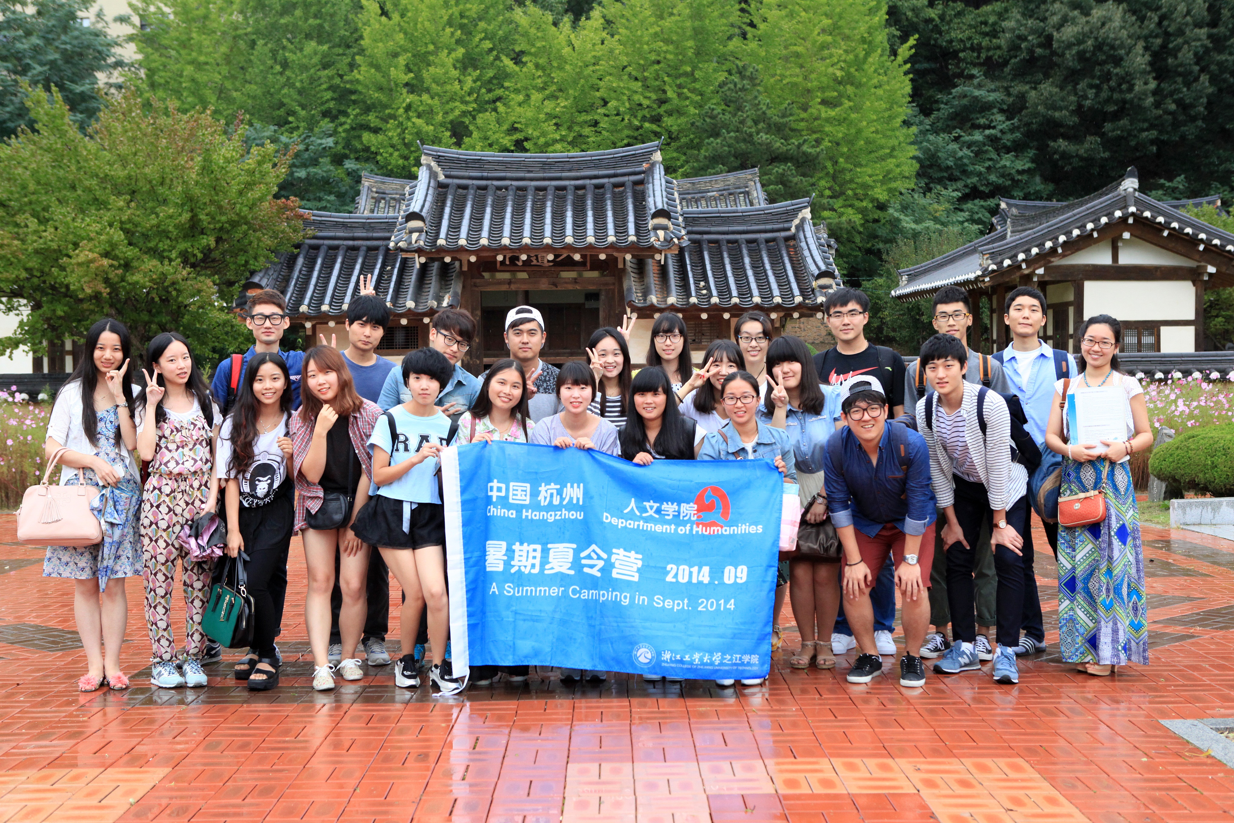 2014年暑期,人文学院组织14名师生赴韩国开展游学活动。本次游学包含高校交流、著名人文景观游览、韩国文化体验。通过与著名学府的参观、与韩国学生的交流、泡菜制作、韩服体验以及景点见闻,同学们对邻国文化有了更真实而深入的了解,与韩国学子建立了国际友谊,也在孔子学院的参观学习中为中国梦在世界的影响而自豪。