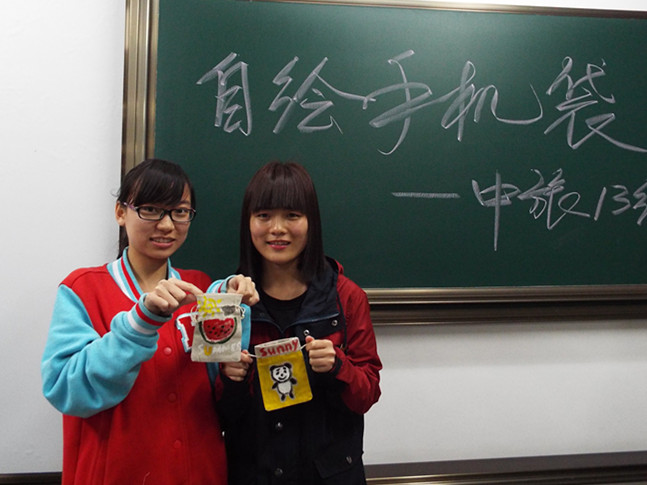 近日,中旅(旅游)学院13级全体学生在教室里DIY绘制个性手机袋,同学们说,他们要为“无手机”课堂增添一抹亮色。