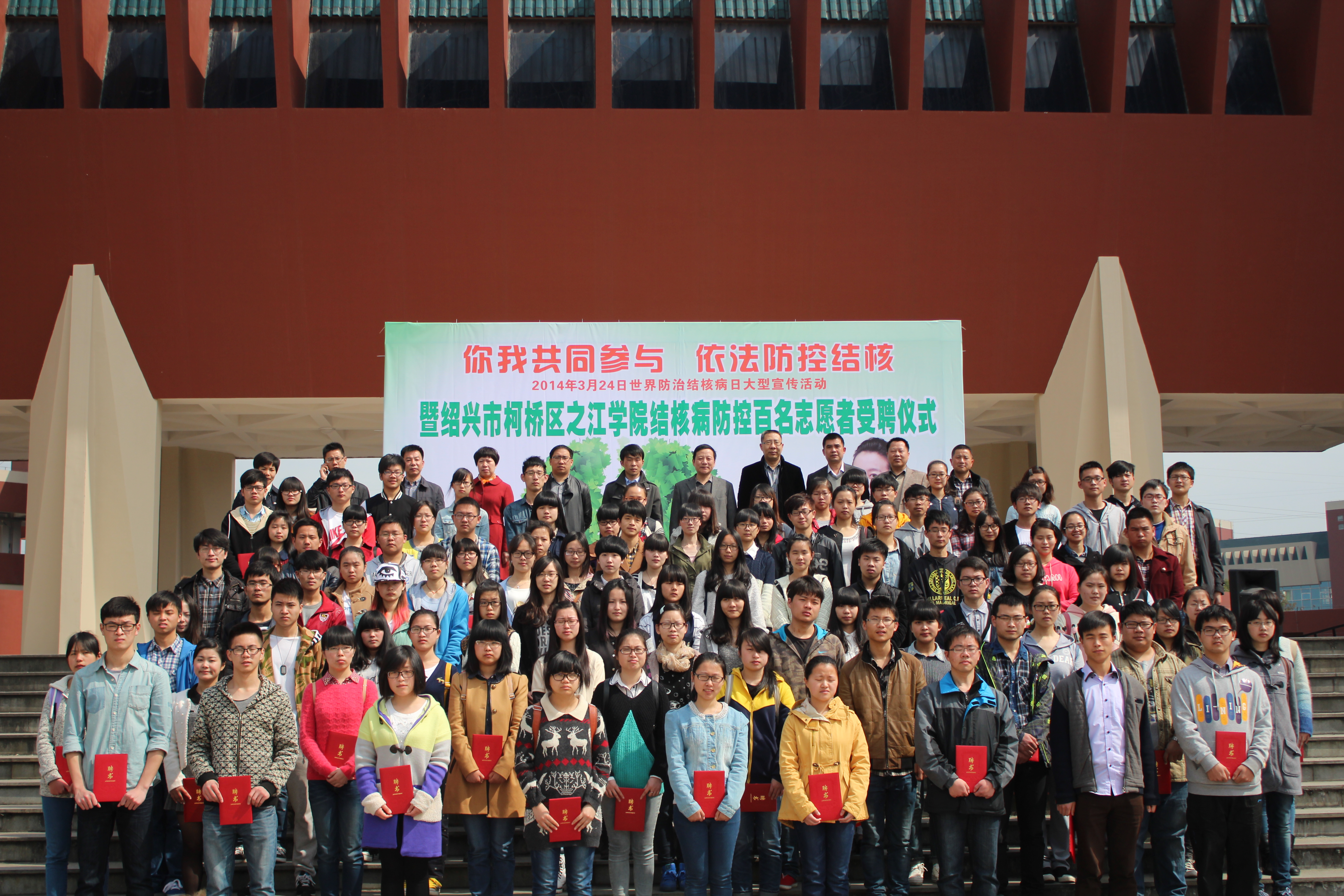在第十九个世界防治结核病日来临之际,由绍兴市疾控中心主办,我院和柯桥区疾控中心、柯桥团区委、柯桥区志愿者总会联合承办的世界防治结核病日大型宣传活动暨柯桥区之江学院结核病防控志愿者受聘仪式在我院绍兴校园举行,我院100名学子受聘担任柯桥区结核病防治知识传播志愿者。