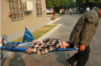 为了使安全疏散演练更加逼真,保卫处使用了烟雾弹、手拉报警器等设备,在演练前,保卫处老师向参与演习的工作人员讲解了这次演习的活动细则,将工作安排落实到人,对学生辅导员进行了岗前培训并分发了一些消防资料,旨在确保安全的前提下,让学生能真实地参与到这次演练中来。演练开始后,随着浓烟滚滚升起,各演习工作人员沉着指挥,打报警电话、拉响手拉警报、拉下电闸、打开疏散通道、疏散学生,一系列动作快速准确,毫不含糊。在各位演习区工作人员和辅导员的指引下,学生们弯着腰,用手帕、毛巾等捂住口鼻,沿着疏散指示楼梯口沉着有序地疏散,在最快的时间内撤离到安全地带。很快,医护救援人员抬着担架赶到现场对受伤的学生进行简单包扎,并尽快转移到相应的救护点进行救治。一路拉着警报的消防车也第一时间到达了演练现场,消防队员们个个训练有素,立马对起火地点做了出水处理,使火情得到了控制。随即各学院辅导员清点人数,并层层向上级汇报。届时200余名师生已全部安全疏散完毕,随后消防大队的参谋对本次演练做了专业的点评。