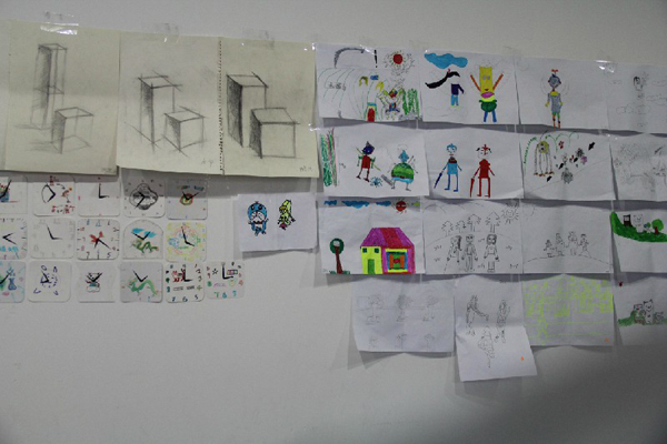 支教过程中,队员们为孩子们上了数学、语文、英语、体育、手工等课程。部分队员还为孩子们补习了暑假作业。由于孩子们学习进度不一致,队员们还采取了一对一等教学模式,尽最大努力帮助孩子们学习提高。孩子们最喜爱是手工课。为此,队员们结合自己的专业特长,精心准备了以“未来世界”为主题的绘画比赛、折卡纸、沙画与立体手工模型制作等内容的课程。从孩子们的“未来世界”绘画中可以看出他们对未来的期待,他们笔下的未来是那么简单而和谐,而在沙画与手工模型制作中,也能看到他们相互间的合作、认真投入的特质。