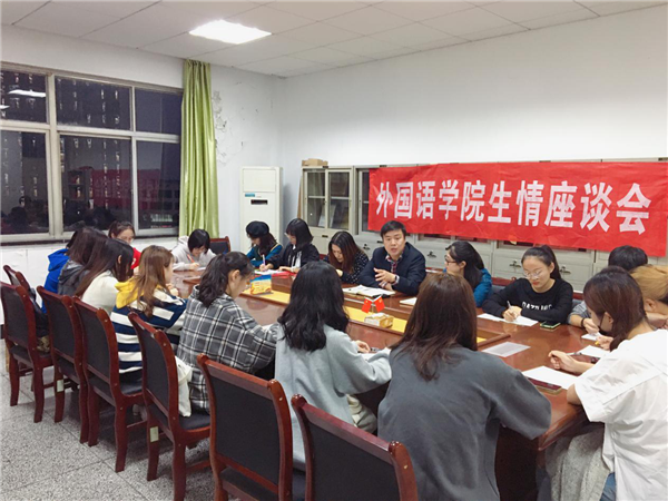 近日,外国语学院组织召开第五十六期“外语生情”座谈会之19级班长支书座谈会,学院党总支书记、学院安全员、19年级辅导员、19年级团总、各班长团支书近20人参加座谈会。