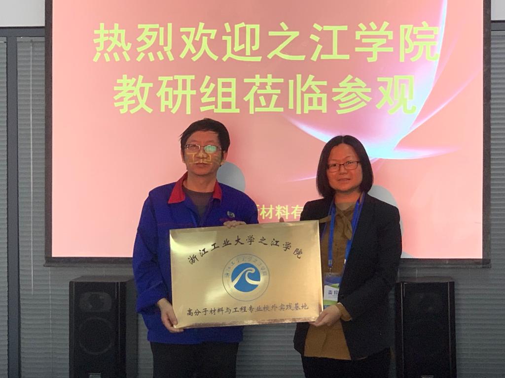 高分子材料教研室一行人首先走进企业会议室,由恒丰新材料有限公司负责人向大家介绍企业的历史及发展状况,并着重介绍了目前高分子专业学生在该企业的生产实习情况、企业对高分子专业人才的需求、校企间科研项目合作申报事宜等方面,理学院副院长介绍了之江学院高分子专业的相关情况。双方就未来高分子专业人才培养、学生生产实习及校企联合申报省市级科研项目进行了深入的交流讨论。交流结束后,举行了共建高分子专业校外实践基地的授牌仪式。随后,在恒丰新材料相关部门负责人的带领下,教师们参观了恒丰新材料实验室及生产车间。