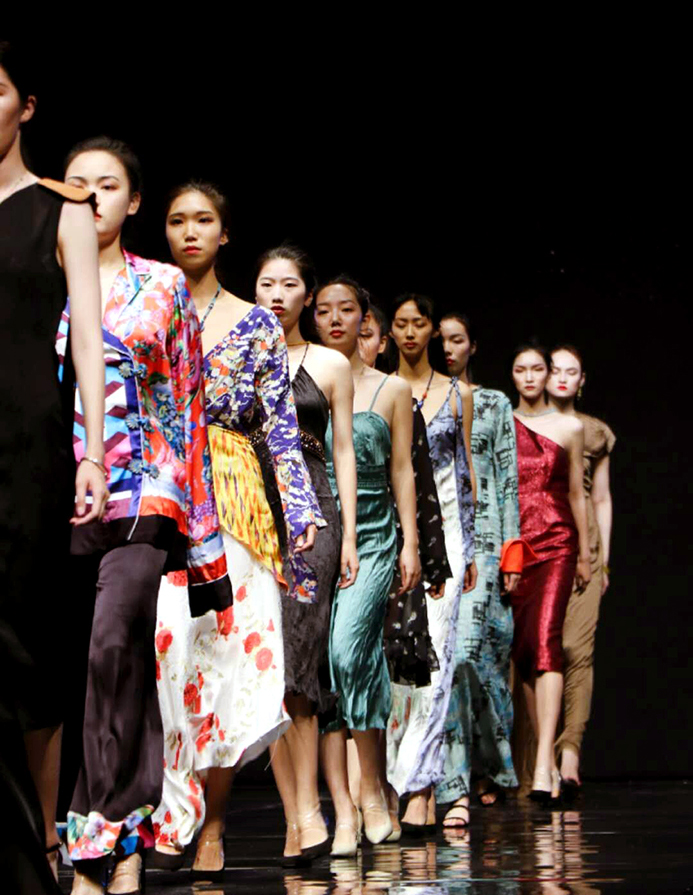 据悉,本次秀场由浙江工业大学之江学院服装表演与形象管理研究所刘庆青教授担任导演,并将自己对设计师艺术构想的理解贯彻到全场的每一丝光影和每一个节奏当中。模特作为时装的直接展示者,经常被比喻为行走的衣架。发布活动前,刘教授不断带领模特熟悉舞台,告诉模特队员们如何完美地演绎好每一套服装,使模特的个人气质与时装、配饰完美融合,兢兢业业地将服装艺术、时尚品味和展示创意带到这场时装发布会上。服装配以璀璨的珠宝,模特们风格迥异的走秀表演点亮了整个创意大厦时尚发布厅,给观众带来了一场精彩的时尚盛宴。