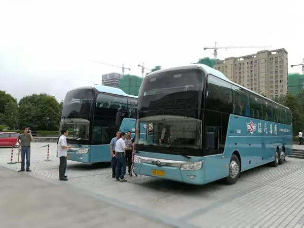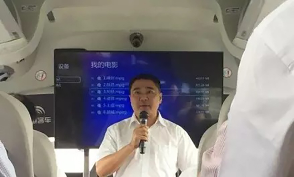 柯桥区委书记徐国龙在前往柯桥的大巴车上汇报上半年工作情况及项目概况