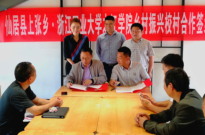 会上,我院与仙居县上张乡签订了产学研创新合作协议,并进行授牌仪式,授牌上张乡为浙江工业大学之江学院建筑学院乡村振兴产学研基地;同时,我院教师庞乾奎被聘为上张乡乡村振兴-村庄规划与设计实践课堂导师,将在传统村落的保护与开发、村庄规划与设计、特色产业提升计划等方面提供实践指导。