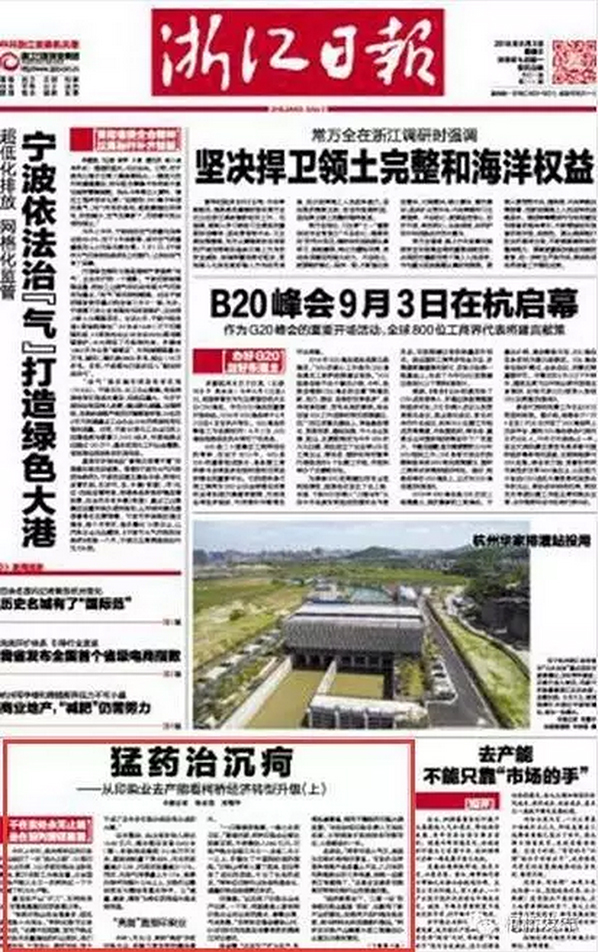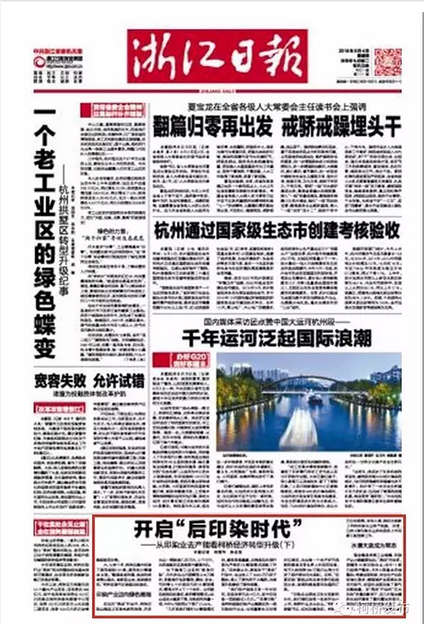 省委书记夏宝龙还对昨天的《猛药治沉疴——从印染去产能看柯桥经济转型升级(上)》作出批示:好文章。