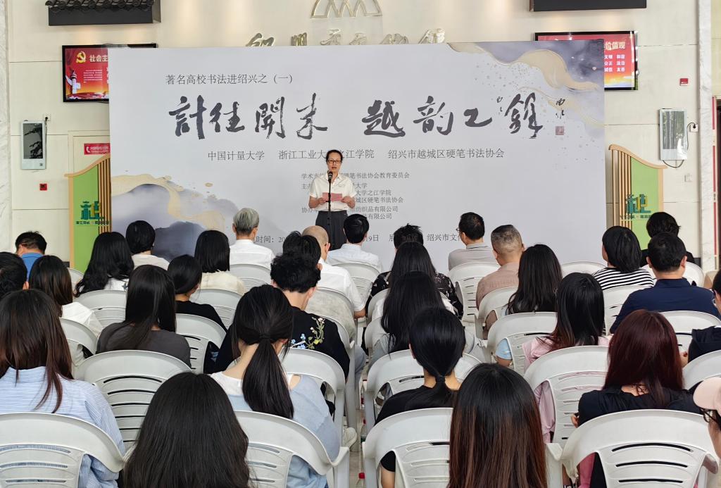 6月5日,由浙江工业大学之江学院、中国计量大学、柯桥区诗词楹联协会、绍兴市越城区硬笔书法协会主办的著名高校书法进绍兴之“计往开来 越韵工锋”大书法联展在绍兴市文化馆开幕。绍兴市越城区人大主任徐荻,中国计量大学宣传部部长陈永强,浙江工业大学之江学院纪委书记杨燕,绍兴市越城区硬笔书法协会会长范小明,学院纪检办公室负责人、人文学院党总支负责人、人文学院学工负责人及40余名学院师生代表出席开幕仪式。
