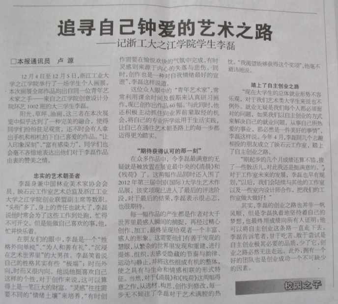 上一条:[2012-12-31]浙江在线\互联星空?浙江2012-12-25:红围巾牵手红领巾 工大之江志愿者携手小学传播爱心 下一条:杭州日报(B4教育新闻)2012-12-11:之江学院成立一所学院合作方是欧洲最古老的时尚创意学院