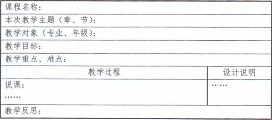5.教案设计。该教学方案与大赛现场课堂教学时间(20分钟)相配套,文件提交格式为WORD。基本设计要求如下: