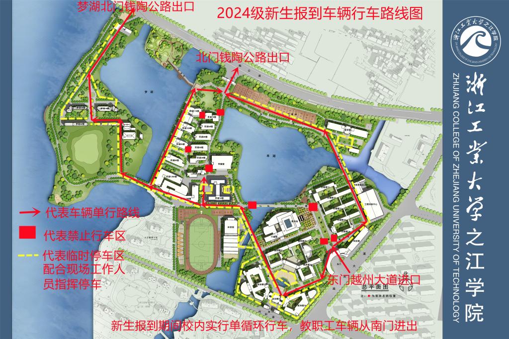 3.图书馆东侧、朝晖路四周区域作为新生报到地点,实行封闭式管理,禁止机动车、非机动车通行。