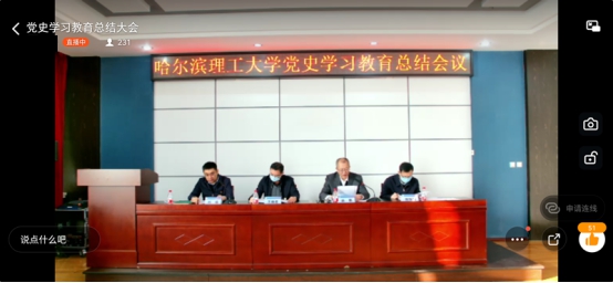 会前,全体与会成员一同收看了哈尔滨理工大学党史学习教育成果回顾视频短片。视频中再现了全校师生学党史、悟思想、办实事、开新局的一个个难忘瞬间,引发现场参会人员阵阵热烈掌声。