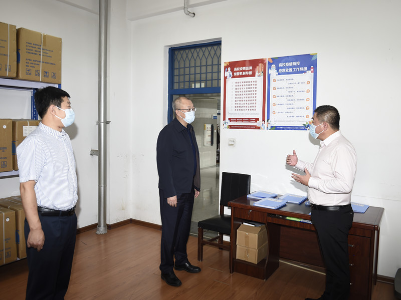 为进一步做好校园安全和疫情防控工作,贯彻落实党中央、国务院及省委、省政府、省教育厅重大安全工作部署,确保党的二十大期间教育安全形势持续稳定,8月29日上午,学校党委书记赵琳、副校长杨忠学带队开展校园安全、疫情防控专项督查。赵琳在督查中强调,相关单位要深入学习贯彻习近平总书记关于疫情防控的重要指示,落实好全国安全生产电视电话会议精神,不折不扣落实省委省政府、省教育厅关于校园安全和疫情防控工作的有关部署,坚持“早快准严细实”工作要求,持续推进校园安全“四个体系”建设,压紧压实责任,不折不扣推进校园安全和疫情防控工作落到实处。