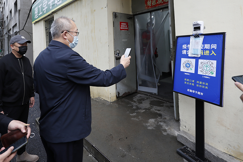 校领导在西区一号楼学生返校缓冲区全流程了解学生返校环节
