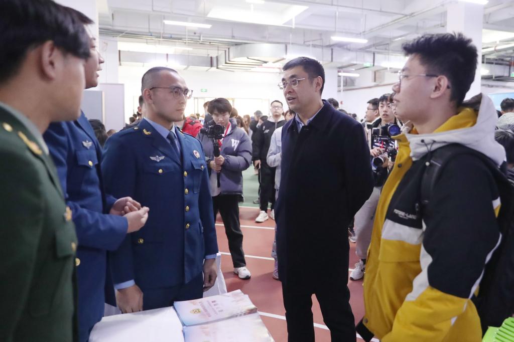 校长刘侠在参军入伍咨询站与学生亲切交流
