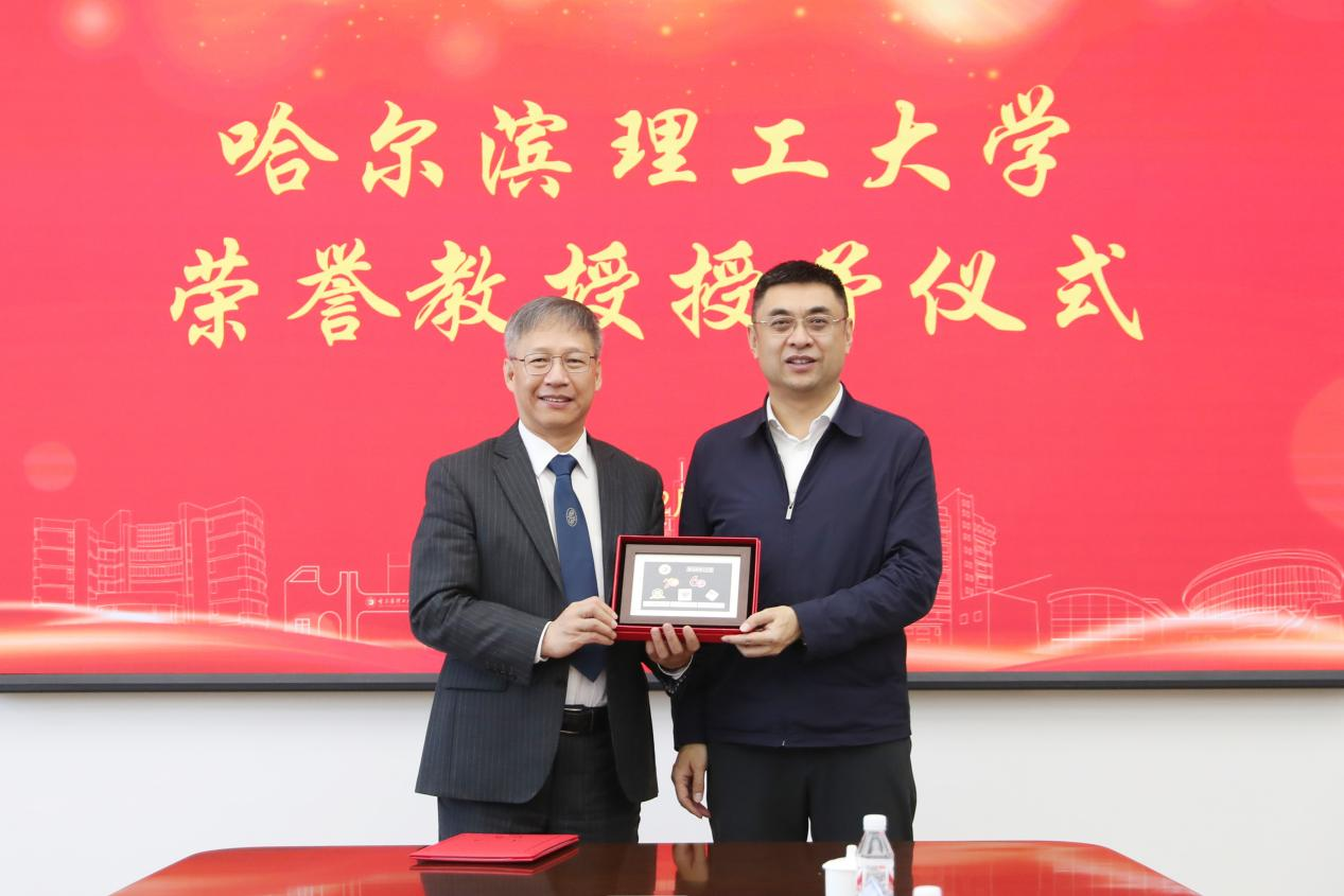 刘侠校长在致辞中表示诸自强院士是电机领域的国际顶级科学家,双方自合作建设“头雁”团队以来建立了密切联系,本次授予仪式将为双方进一步合作奠定坚实基础。诸院士表示哈尔滨理工大学是一所拥有深厚学术造诣和浓厚文化底蕴的高校,当年求学过程中经常拜读汤蕴璆等先生的论著,对其职业生涯发展有着深远影响。随后,刘侠校长满含敬意向诸自强院士颁发荣誉教授聘书以及承载着学校深厚情谊的纪念徽章。
