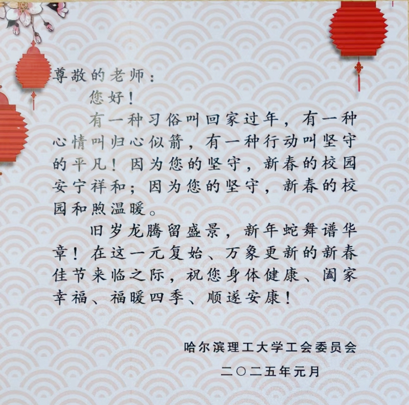校领导表示,过去的一年,学校各项事业呈现蓬勃发展的良好态势,大家都在各自平凡的岗位上作出了不平凡的贡献,为学校的发展建设提供了坚实的保障,推动“理工号”行稳致远。农历乙巳蛇年即将到来,希望全体理工人聚合力、勇创新、开新局,继续传承弘扬“大珩精神”,持续答好“教育强国、理工何为”的时代命题,为创建高水平特色鲜明的国内一流理工科大学,为国家经济社会发展作出更大的贡献。最后,校领导祝福大家在新的一年里螣螣日上、巳巳如意、事业蟠蟠!