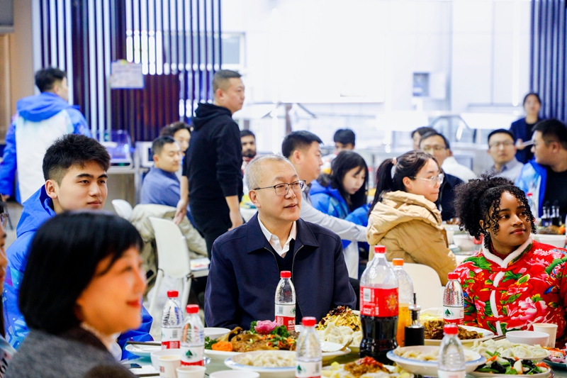 学校领导亲切慰问亚冬会志愿者代表和在校留学生代表并与同学们共进午餐