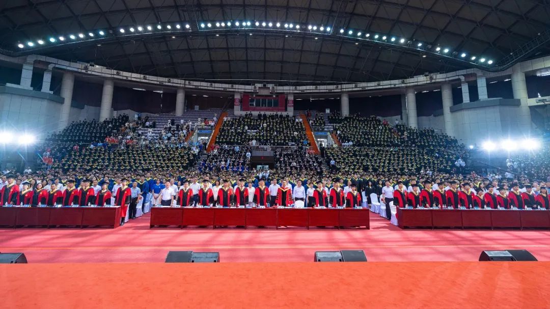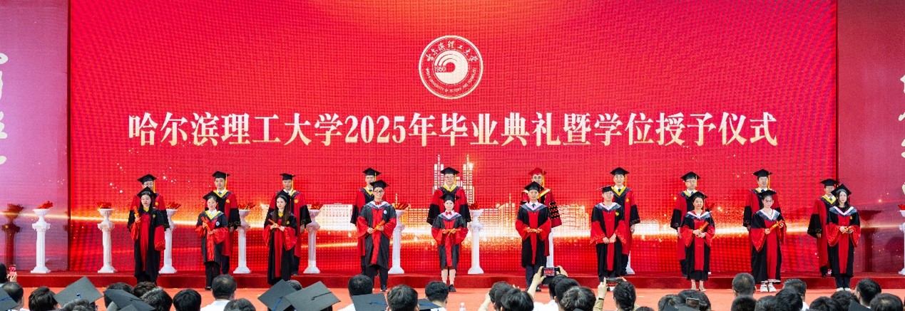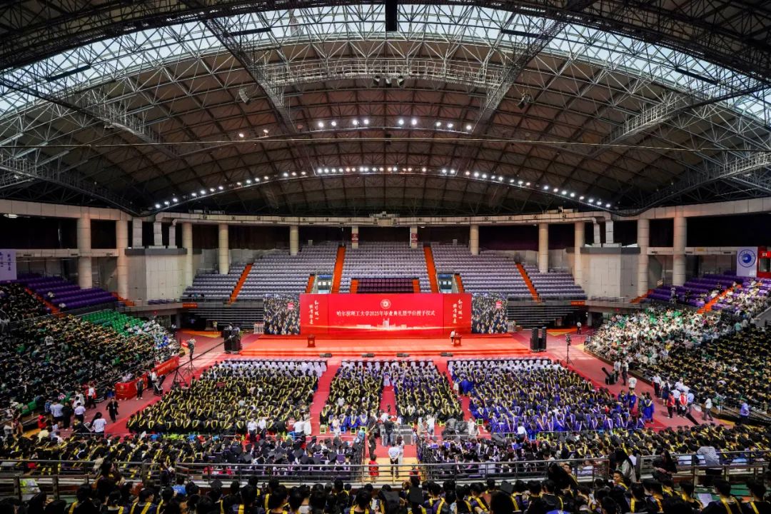 在繁花似锦,如诗似画的美好季节,又一批哈理工学子即将扬帆起航、追梦星河,开启崭新的人生篇章。6月23日下午,哈尔滨理工大学2025年毕业典礼暨学位授予仪式在西区体育馆举行。全体校领导,校学位评定委员会委员,各职能部处负责人,各学院党委书记、院长、党委副书记,学院分委会相关委员,导师代表,校友代表,家长代表,全体毕业生辅导员等在现场共同见证2025届毕业生圆满完成学业,踏上新的人生征程。荣成学院干部教师和毕业生代表同步举行毕业典礼并收看现场实况。毕业典礼由校党委副书记赵水杉主持。
