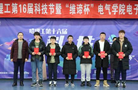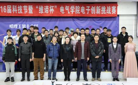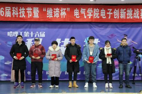 为进一步深入贯彻落实党的十九大精神,加强学生“德智体美劳”全面发展,培养学生社会责任感、创新意识以及实践能力,营造积极向上的校园科技学术氛围,促进大学生课外科技学术活动蓬勃发展,鼓励哈理工学子主动发现、自主研究、自主创新,2020年12月6日,哈尔滨理工大学第十六届科技节暨“维谛杯”电气与电子工程学院电子创新挑战赛决赛在一号楼举行。此次大赛由校团委主办,电气与电子工程学院承办,10支参赛队伍和学院党委副书记张颖、电气系统及其自动化系副主任李隆、理论电工实验室副主任陈才、学院团委书记周广、20级辅导员张宏亮、学院学生会指导教师李琦老师出席了本次活动。