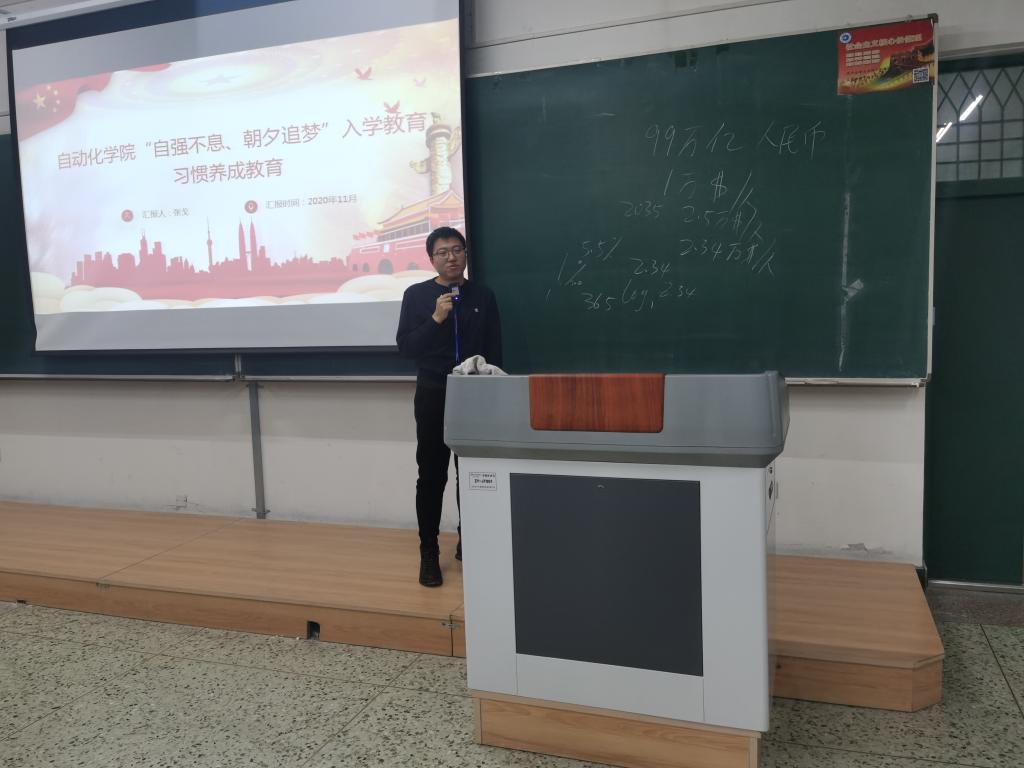 为帮助新生熟悉、接纳并适应大学生活,养成良好的行为习惯。11月5日,自动化学院辅导员张戈于新主楼B514和A102开展习惯养成教育。会上,张戈老师从生活习惯、学习习惯、人际关系三个方面分析了大学生在校现状,提出了培养与养成良好习惯的方法,倡议同学们做到每天都要比前一天进步一点点。通过讲座,同学们更加清楚身为当代大学生的使命与责任,找到了尽快地熟悉、适应新的学习生活的抓手,尽快完成高中生向大学生的转变,以便更好地融入大学期间的学习和生活。