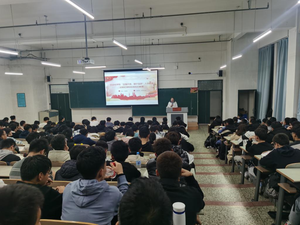 11月5日,自动化学院辅导员黄林萱于新主楼B514和A102开展法制纪律和校规校纪教育。黄老师着重解读了哈尔滨理工大学相关校规校纪。让同学们对学籍管理、校园秩序、课外活动、学生奖励、违纪处分等规定有了充分的了解。并用实际案例,为同学们详细解读了哈尔滨理工大学学生考试违规(违纪、作弊)行为认定及处理办法,并要求2020级新生们期末考试要认真备考、诚信考试,做到零违纪。