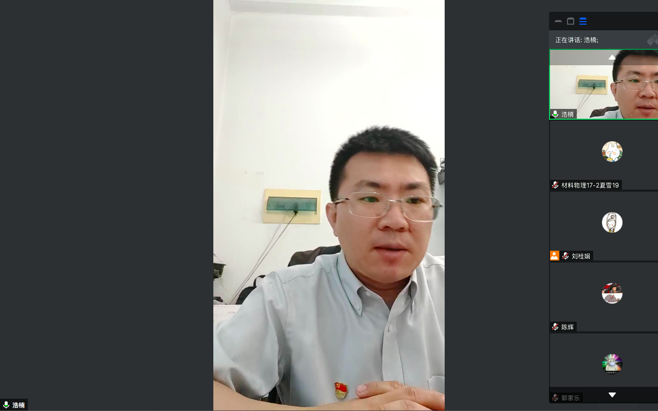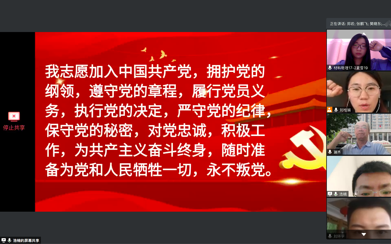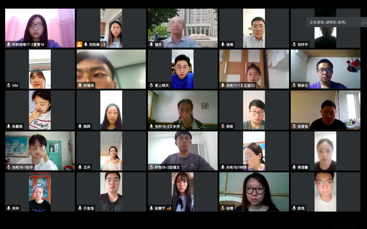 为庆祝中国共产党成立99周年,学习贯彻习近平新时代中国特色社会主义思想,按照学校党委《在常态化疫情防控中持续发挥基层党组织和党员作用的具体举措》工作要求,认真贯彻落实基层党组织和党员在常态化疫情防控中发挥作用,7月1日18时,理学院党委书记端木永东、理学院党委副书记陈迪男及全体辅导员通过腾讯会议与本科生党支部77名学生党员在云端相聚,会议主题以“从疫情防控看党员的初心与使命”为题,帮助学生党员正视疫情所带来的危机与挑战,审视“疫情常态化下”学生党员要牢记初心使命,发挥党员的先锋模范作用,迎接“七一”党的生日。党课由理学院本科生第一党支部书记张浩男主持。