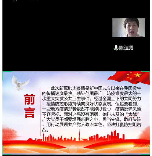 首先,端木永东书记以2020年抗击疫情的社会环境为背景,强调作为中共党员,要牢记党员的初心使命,时刻提升个人本领并以一名优秀共产党员要求自己;要在疫情防控常态化背景下,坚定理性信念,把准人生之舵,充分发挥党员模范带头作用。