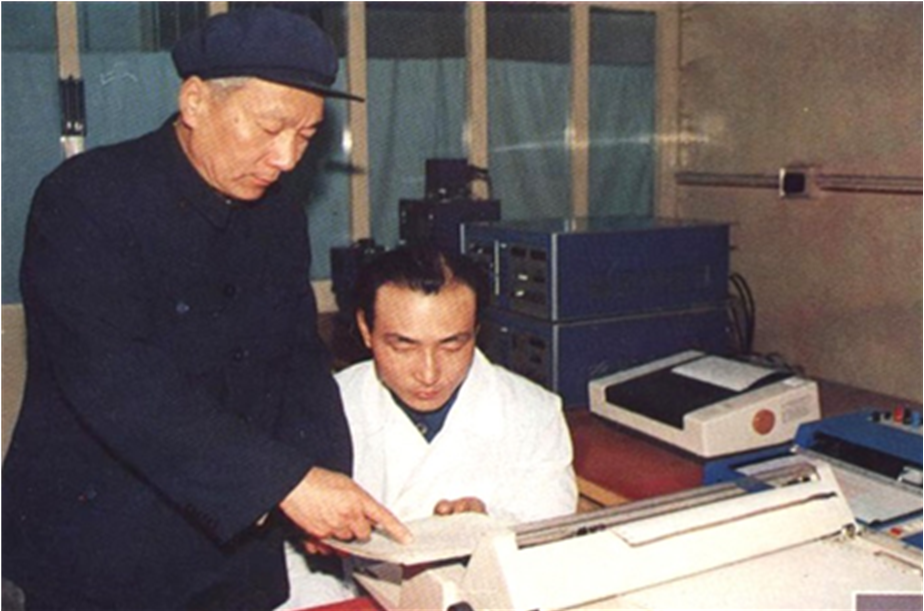 费敏明教授(中)与科研团队成员利用红外光谱分析材料结构