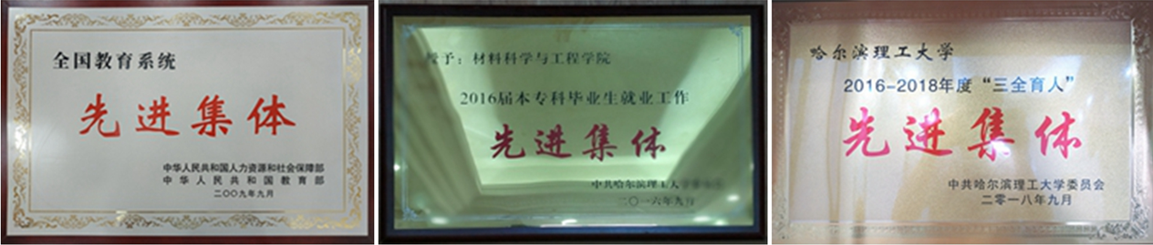 2012年材料科学与工程一级学科获批省级高水平优势特色学科;同年,材料科学与工程学科在全国第三轮学科评估中排名49/98;2013年,以李大勇教授为首的“液态金属成型过程快速检测与质量控制”科研团队和以韩志东教授为首的“光电功能石墨新材料的研究与开发”科研团队同时获批为省高校科技创新团队;2016年材料科学与工程学科在全国第四轮学科评估中获得C+,排名在40%~50%之间;申报并获批了哈尔滨理工大学——中国航发哈尔滨东安发动机(集团)有限公司材料科学与工程黑龙江省研究生创新实践(示范)培养基地;2018年获批了以房文斌教授为实验室主任、孙凤莲教授为学术委员会主任的黑龙江省轻金属材料改性与绿色成形技术”省重点实验室;同年,获批了以王丽萍教授为带头人的材料加工工程省级领军人才梯队;2019年,与兄弟学院联合申报的先进制造智能化技术教育部重点实验室获批;同年,获批了以石德全教授为主任的黑龙江省液态金属质量快速评价及先进成型技术创新中心、以申泽骧教授为主任的黑龙江省石墨-石墨烯协同创新中心。至此,材料科学与工程一级学科下的三个二级学科方向—材料学、材料物理与化学、材料加工工程全部获批为省级领军人梯队,设3名带头人、6名后备带头人。2020年3月,根据科睿唯安发布的ESI(Essential Science Indicators,基本科学指标数据库)最新数据显示,“材料科学”学科首次进入ESI全球前1%学科排行榜,成为学校继“工程学”学科后第二个进入ESI全球排名前1%的学科。”